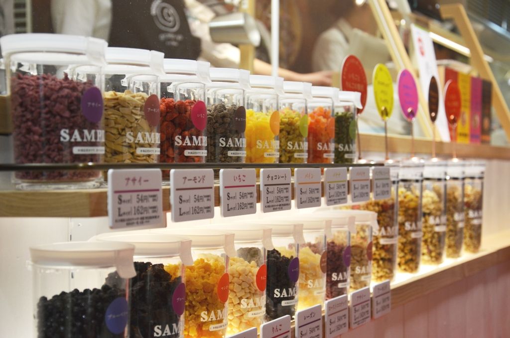 また、自分好みのトッピングも2種類まで可能で、アサイーなどの珍しい素材も含めて約15種類から選ぶことができる(トッピングの種類は季節によって異なる)