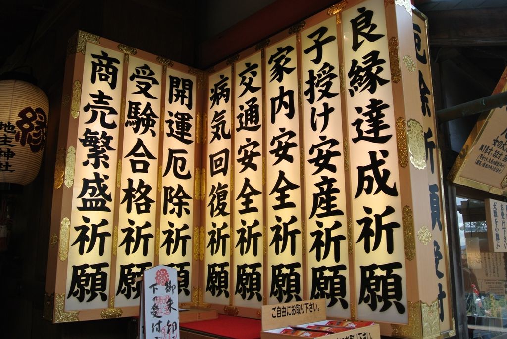 このように、地主神社には合わせて6つもの末社がある。恋愛だけでなく、商売繁盛も安産も・・・といろいろ祈願したい欲張りさんにもおすすめ。お守りもたくさんのご利益で売られているので、自分が叶えたい願いをあれこれ買うのもいいかもしれない。