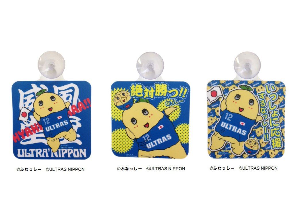 そして、6月12日から7月13日にかけて開催予定のブラジルワールドカップ2014に出場するサッカー日本代表を応援するウルトラスとコラボし、ふなっしーSHOP限定で「ウルトラスコラボ サインボード」(全3種、900円+税、4月22日から販売)と、「ウルトラスコラボ 必勝お守り」(全3、各600円+税、5月5日から販売)が登場。キデイランド原宿店に加え、キデイランド大阪梅田店でも販売される。