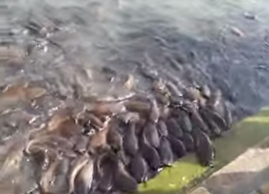 ヌメっとした体が折り重なり合い、仲間をかき分けて餌を求めてぽっかり大きな口を開けているナマズたち。一度見たらトラウマ!決して忘れることのできない地獄絵図だ!