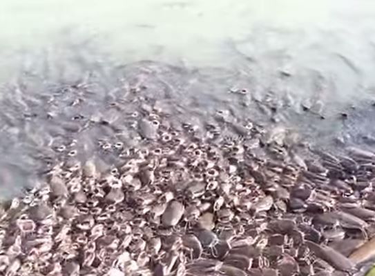 この50cmを超える巨大なナマズは、東南アジアならば即刻食料にされる。しかしインドでは魚を食べる習慣が少なく、この砂漠地帯ではイスラムの戒律もあり、このナマズは食用にはならず、このような状況になっているのだという。