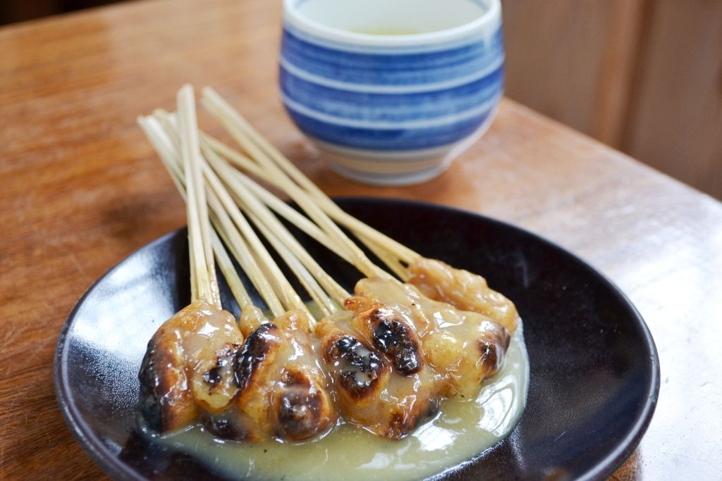 先日、この2つのお店どちらにも入ってみて、あぶり餅を食べてみた。いずれのお店もメニューはあぶり餅のみで、1人前500円(当時)。味のほうも甲乙付けがたく、「どちらもおいしい」という結論に達した。1人で2つのお店をはしごし、2人前を食べるのは苦しいかというとそうでもなく、気になる人は2つのお店で食べ比べてみて欲しい。