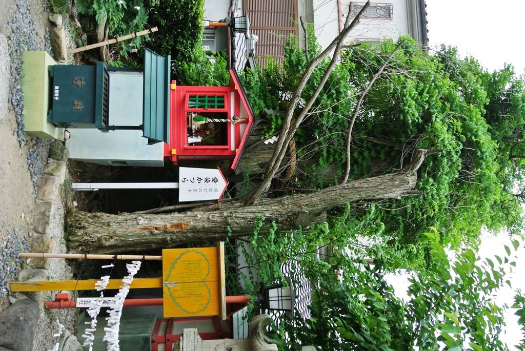 祭りの期間中以外は閑静な雰囲気の境内だが、恋愛のパワースポットとして女性の信仰を一心に集める「愛染かつら」にも注目。樹齢数百年といわれる桂の木に、ノウゼンカヅラが絡みついた木が祀られている。その姿が、男性的な大樹の桂に寄り添う女性的なかずらとして見られていて、男女の縁を結んでくれる縁結びの霊木とされている。この霊木の前で語り合った男女は、何があっても幸せな結末が訪れるという伝説が残る。