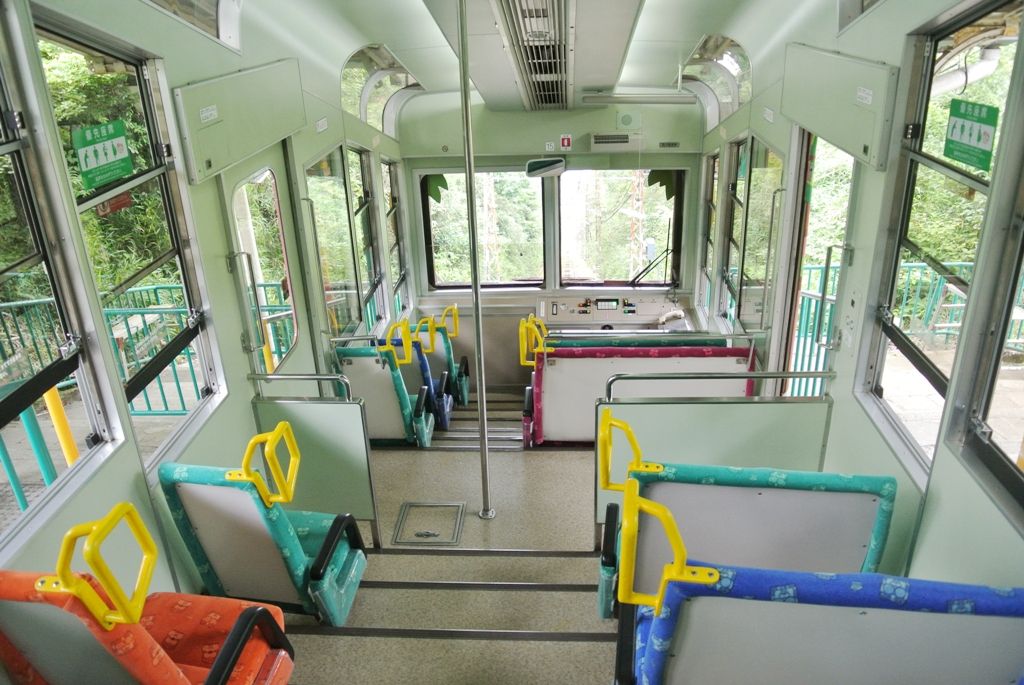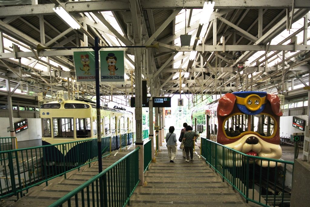 そして駅舎に入るとさらにビックリなのが、一度見たら忘れられないであろうケーブルカーの賑やかすぎるデザイン。出迎えてくれたのは「ブル」という名がついた犬のほうで、もう1つ「ミケ」というネコの装飾が施されたケーブルカーもあり、途中ですれ違う際に見ることができる。このようなデザインの幼稚園、保育園のバスは見たことがあるが、ケーブルカーでは極めて珍しく、小さな子どもは喜びそうだが、大人はちょっと照れくさいかも・・・