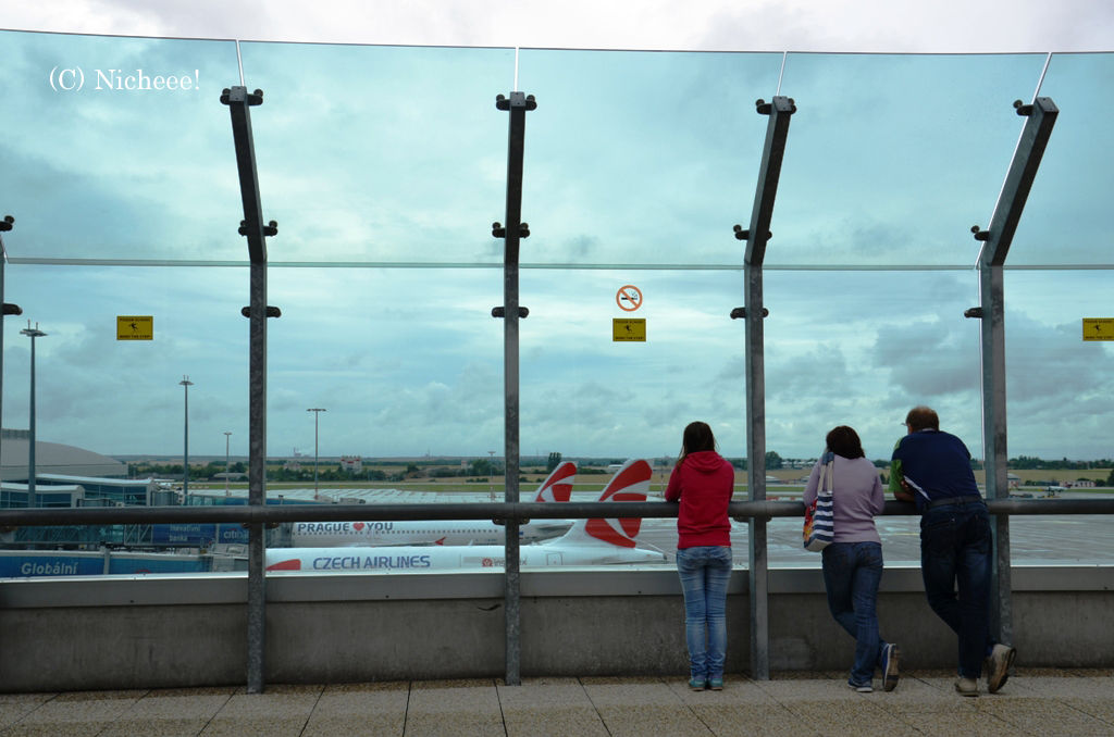 その1つが、まず、空港の展望デッキ。ターミナル1とターミナル2にそれぞれあり、利用は無料。ガラス越しにはなるが、駐機する機体、離発着する飛行機を眺めることができる。国営のチェコ航空をはじめ、日本に就航していないエアラインもかなり多い。航空マニアならなおさら楽しめること、間違いなし。