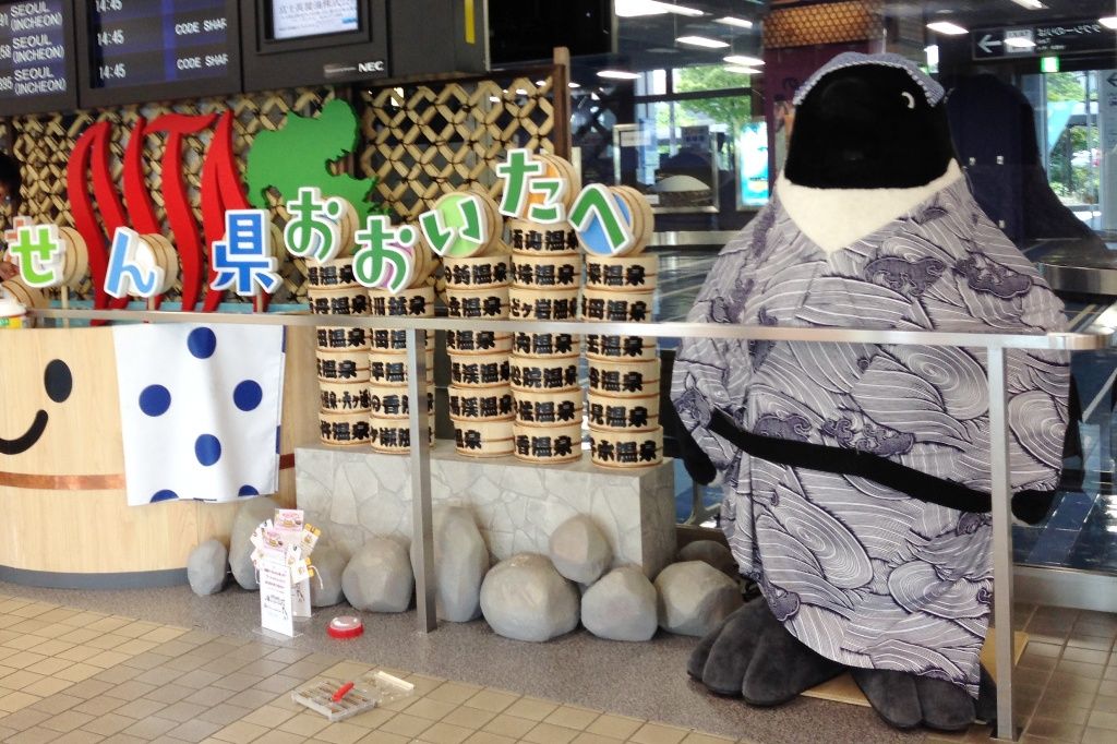 ペンギンのマーシャルくん、大分空港を訪れた際、ぜひチェックしてほしい。もう1つ、大分空港のターンテーブルには巨大な寿司ネタが回っていることでも有名。こちらもお見逃しなく。