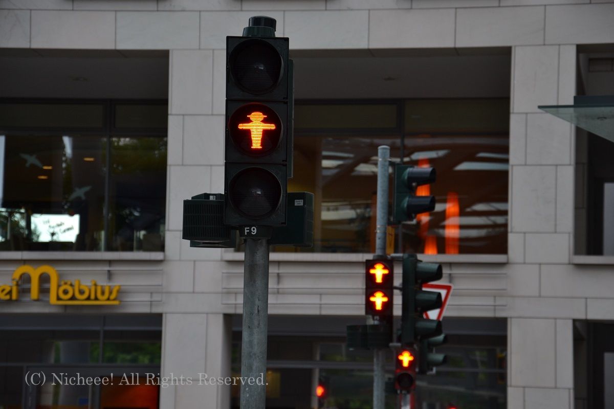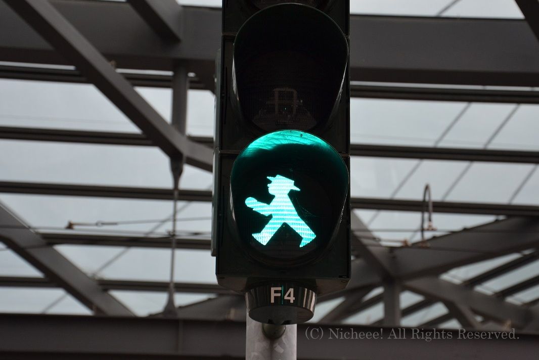 アンペルマンは、東西冷戦時の東ドイツで信号機(アンペル)から生まれた、赤と緑のランプの中に描かれている男の子のこと。この信号機自体、だんだん数は減っているものの、今でも旧東ドイツ領内で見かけることがある。