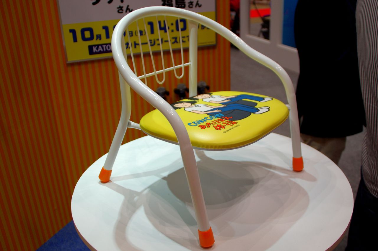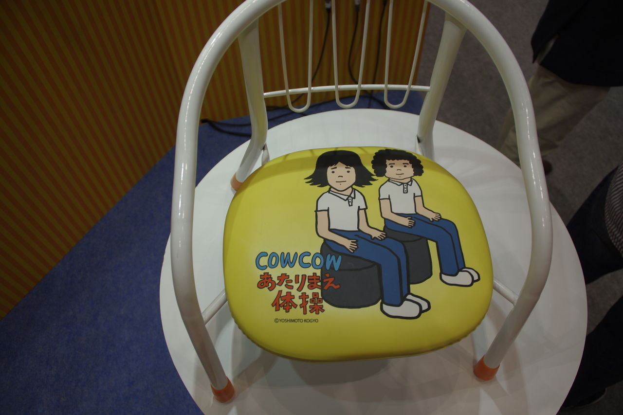同イベントに出展していたベビー用品メーカーのKATOJI(カトージ)では、日本国内だけにとどまらず、今では海外でもヒットを見せる「あたりまえ体操」でお馴染みのCOWCOWとコラボした「パイプイス あたりまえ体操(座れる)」を発売前の先行公開を行っていた。