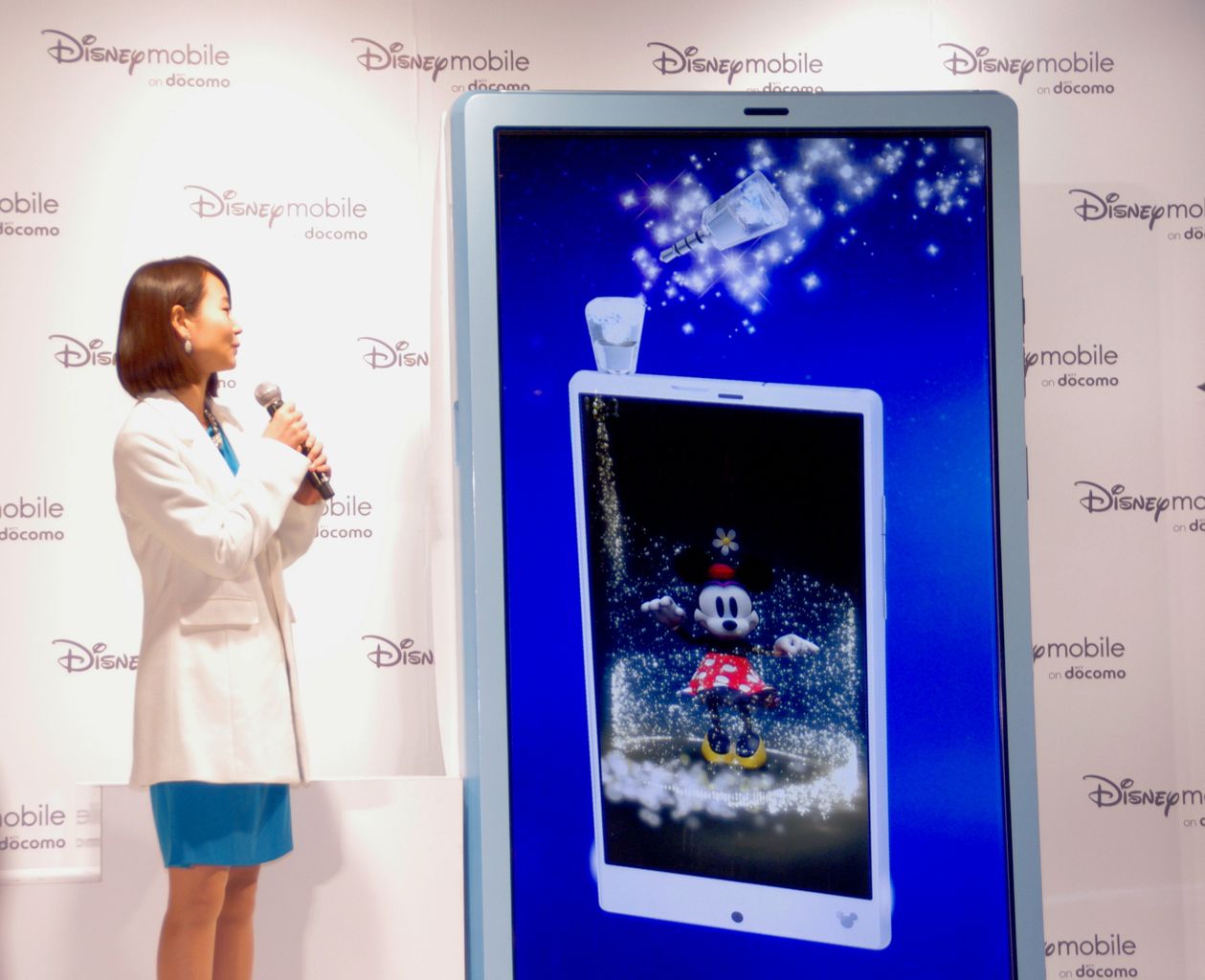 20日、ウォルト・ディズニー・ジャパンとdocomoの協業ブランド「Disney Mobile on docomo」から11月中旬に発売予定の新機種「SH-02G」の発表を記念するイベントが、東京スカイツリータウンで行われた。