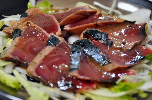 ◆カツオのたたきにマヨネーズを少しつけてから醤油をつけると血の臭みがなくなりおいしさが増す