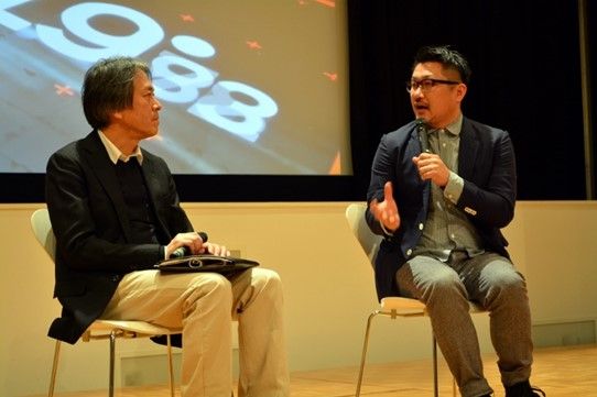 記者発表会のゲストには、アートやコマーシャルの領域で立体作品やインタラクティヴ作品を制作する株式会社ライゾマティクスの代表取締役・齋藤精一氏が登壇。加持氏とトークセッションを行った。