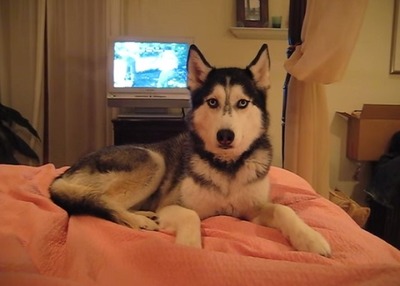 男の飼い主が「アイラブユ〜」と話かけるが、全部無視する犬。しかし、女の飼い主が「アイラブユ〜」と話かけると「アイラブユ〜」と反応。どうやら男には、まったく興味がないようだ。