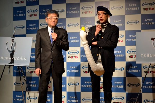 そして本日、アニマックスの「スマホでアニメプロジェクト」のプロデューサーに就任したテリー伊藤を迎え、「手ぶラクチン」の発表会が東京・青山の表参道ラ コレッツィオーネで開催された。