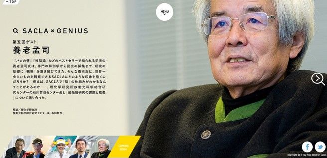 世界最先端施設であるX線自由電子レーザー施設「SACLA(サクラ)」のスペシャルサイト内「SACLA×GENIUS」のコーナーにて、解剖学者 養老孟司氏とセンター長の石川 哲也との対談の模様が公開された。