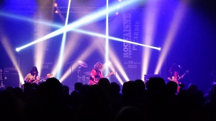 初日のフランスROCK AISNE FES 2015では、1000人の観客の前で着物を振り乱して熱唱!日本の伝統的な衣装をうまく着こなしていると、世界の共演バンドから評価された。