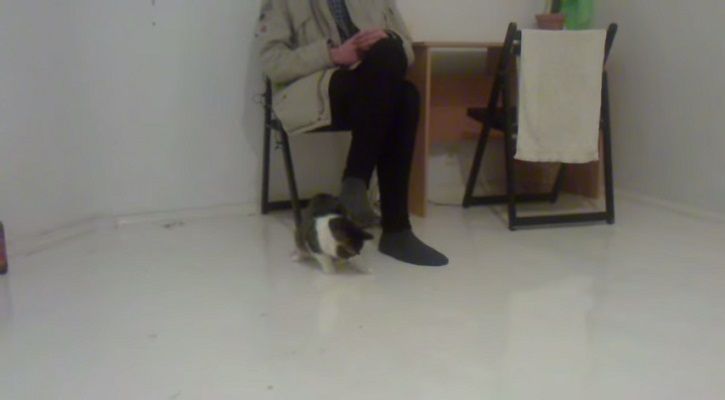 飼い主の足の影に向かって攻撃を続ける猫。自分の頭の上にある飼い主の足に遊ばれているとも知らずに影を追いかける猫がカワイイ。