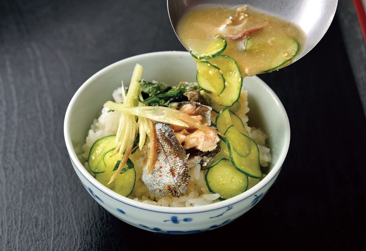 さつまは、愛媛県の各地でみられる、魚と味噌を使った郷土料理。川魚の養殖が盛んな市内の河辺地区で、アマゴのさつまが食べられる。河辺地区の清流で育ったアマゴの身を香ばしく焼き上げて風味を際立たせ、大洲特産の麦味噌で作ったさつま汁と一緒に温かいごはんにかけて食べる。さっぱりとした後味、川魚の臭みもなく、お酒の後の締めにもピッタリ。