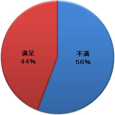 「満足」と答えた人は257人。「不満」と答えた人は323人と、全体の約56%の人が「不満」と回答した。