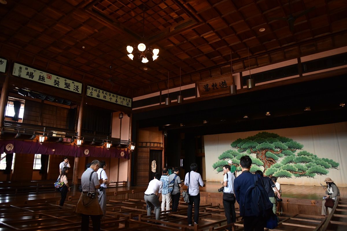 内子座は大正5年(1916)、芸術と芸能を愛する人々が建てたのがはじまり。木造2階建瓦葺き入母屋造りで、回り舞台や花道、枡席などがある都市型劇場として芝居などが上演され、その後、映画館など改修され、現在は劇場として保存・活用されている。内子座は「距離の近さ」が売りで、観客が役者の涙まで見られるのだとか。また、照明器具がなく、大きな窓があって自然光で芝居をしていた当時の面影を残す。