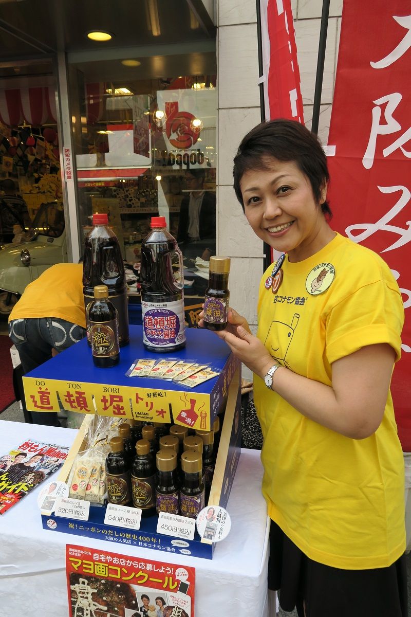 香港から来た女性客は「おいしい、これはどんな料理にも合いそう」といい、中国・福建省からの夫婦は「私は、お好み醤油がいいけど、主人は極ソースが気に入っています」と話した。ほかにも、試食するたびに「ハオチー(おいしい)!」と連発したり、すぐに商品をレジに持って買っていったりする観光客もいて、とても好評だった。この「道頓堀トリオ」は、いちびり庵各店で販売されている。
