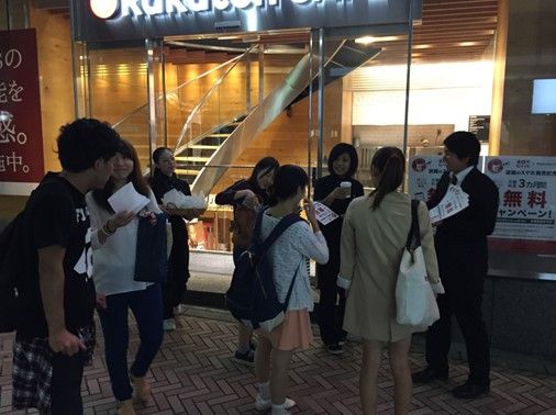 この日だけ夜通し24時間営業するという楽天カフェを夜10時頃訪れてみると、確かに店鋪の入り口でアップルパイとコーヒーを配っているではないですか!しかも、結構な勢いで道行く人々がもらっていく姿が…。いったいなぜ無料で配っているのか!?