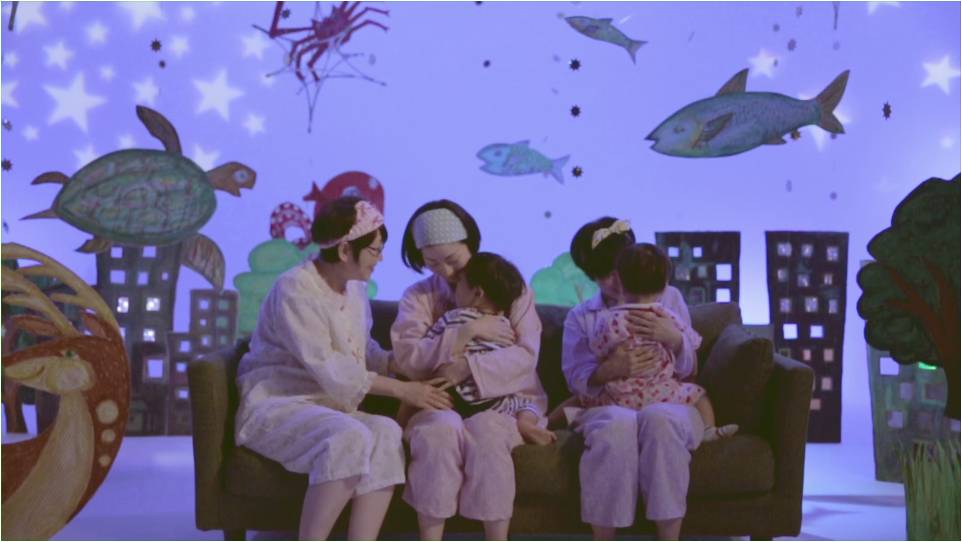 2歳の子どもが覚えたての歌を残したいAさん(東京都在住/30代女性)は、 「2歳になったばかりの子どもが最近 『きらきら星』を歌えるようになったので、家族で歌って踊って、思い出に残したい」と応募。妹と1歳になる姪、母親と揃ってパジャマ姿でご出演し、絵本の中にいるかのような世界観を表現したセットを、森・海・街とシーン毎に切り替えながら撮影された。