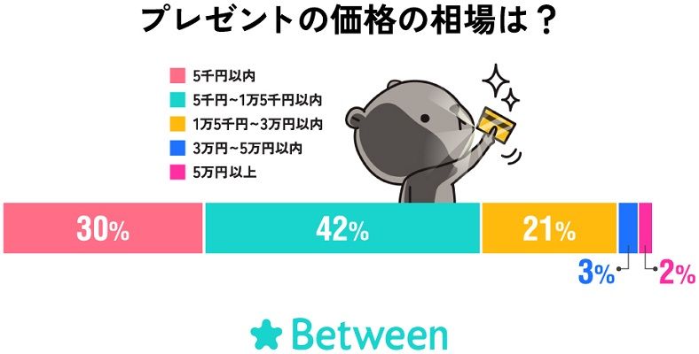 さらに、クリスマスプレゼントの価格の相場は「5000円〜1万5000円以内」(42%)で、プレゼントは「ペアグッズ」(21.3%)という回答が一番多かった。