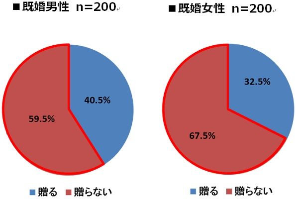 男女別では、男性が59.5%、女性が67.5%と、女性の方がプレゼントを「贈らない」ようだ。