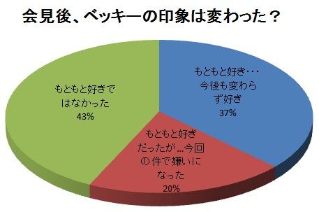 ・ベッキーにもそういうところがあって、なんか安心した。あの明るさと気遣いは変わらないだろうし、特に嫌いになる要素はない。(27歳/女性/神奈川県)