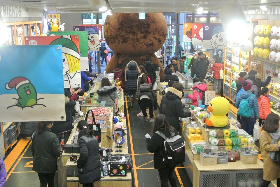 LINEのこのショップ、ソウルだとカロスキルにもあります。ただやはり観光客的には、明洞はとても便利。しかも、フラッグシップ店です。