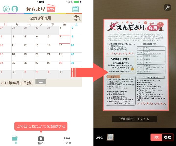 『おたよりBOX』はそんな子供思いのパパとママに最高の助っ人なんです。おたよりをスマホで撮影して、子供の予定をアプリのカレンダーで簡単に管理。