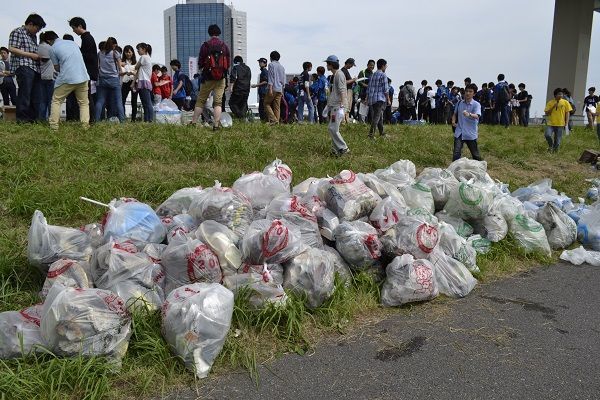 この日、大学生たちが拾ったゴミの量は、燃やすゴミ117袋、燃やさないゴミ17袋、ペットボトル89袋、ビン56袋、缶48袋、粗大ゴミ約50個。