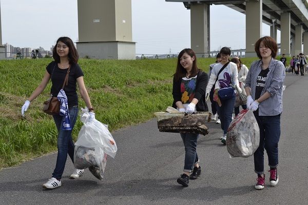 その後、あっという間に制限時間の60分が経過。ゴミを運んでくる大学生たち。どの顔も充実感にあふれている。