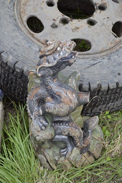 龍?の置物・・・(どこかの中華料理屋さんが捨てたのだろうか?)。さらに、昔懐かしのラテカセ(テレビとラジオ、カセットが合体したもの)だろうか・・・?