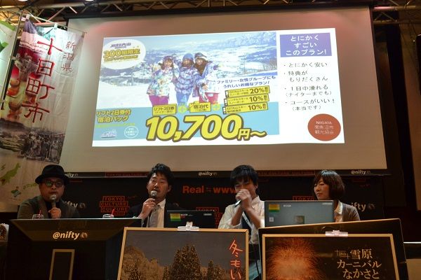 そんな新潟の美味しい料理とお酒に魅了されている来場者に、会場では各観光協会が各々の地域の魅力をPR!