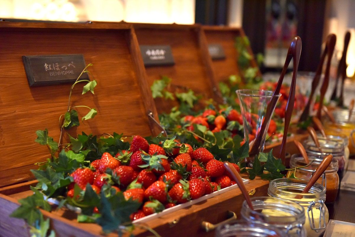 まず、日本でおなじみのブランド苺「あまおう」「ゆめのか」「紅ほっぺ」の国産いちご3種類がなんと食べ放題。これは苺好きにはたまらない。