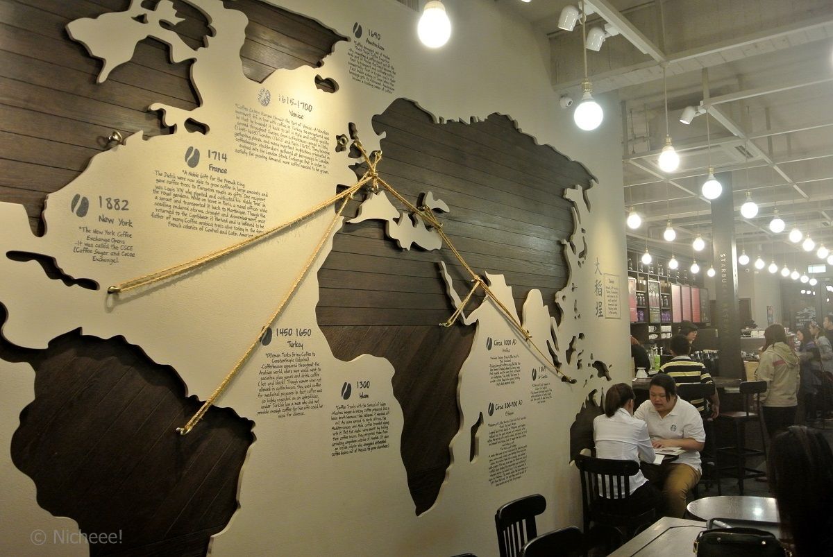 店内に入ると、天井が高くて明るい雰囲気で、大稲埕エリアでかつて栄えたという茶行をモチーフにした内装。スターバックスのスペシャルなコーヒー豆で提供する「リザーブ」もあります。通常メニューにはおなじみのドリップコーヒーから、台湾ならではのポットで提供される中国茶も。日本には見られないスターバックスのロゴ入りチーズケーキやパン、クリスマス限定のケーキなどラインナップも豊富。台湾のスターバックス限定のマグカップなどのグッズもたくさんそろっていてお土産にも良いでしょう。