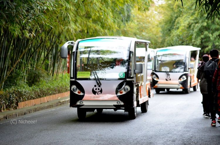 成都市内からの行き方は簡単。地下鉄3号線「熊猫大道」で下車し、地上に出るとシャトルバス乗り場があります。そこで入場券込みのチケットを買って乗ると、入口近くまで行くことができます。帰りもそのバス停付近にあるインフォメーションでバスのチケットが購入可能。