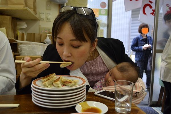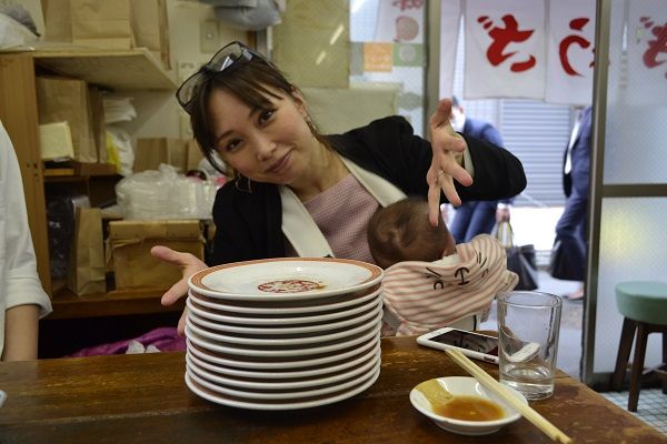 目標30枚を目指して、赤ちゃんを気にしながらも食べまくる三次さん。残念ながら、30枚は食べられなかったものの、しっかりと晩ご飯用にテイクアウトもしていました(笑)