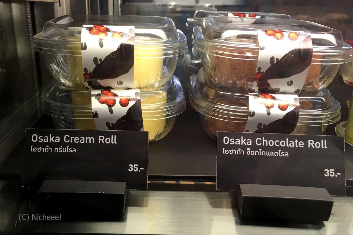 その名も「Osaka Cream Roll」、大阪クリームロールです。ショーケースのその横にもチョコレートクリームの「Osaka Chocolate Roll」もあり、いずれも35タイバーツ(約110円)でした。