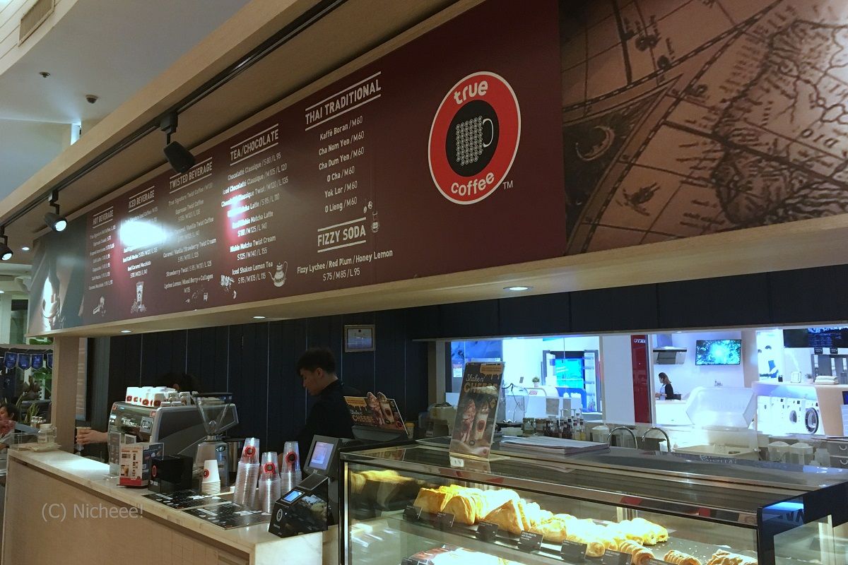 true coffeeは、タイの大手コーヒーショップチェーン。本格的なコーヒーなどドリンクメニューは豊富、Wi-Fiも無料です。タイのインターネットプロバイダー「true」が運営している、いわばネットカフェ。