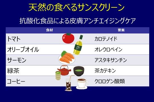 「皮膚アンチエイジングや美白ケアには、ポリフェノールやカロテノイドなどが摂れる抗酸化食品をとりましょう」