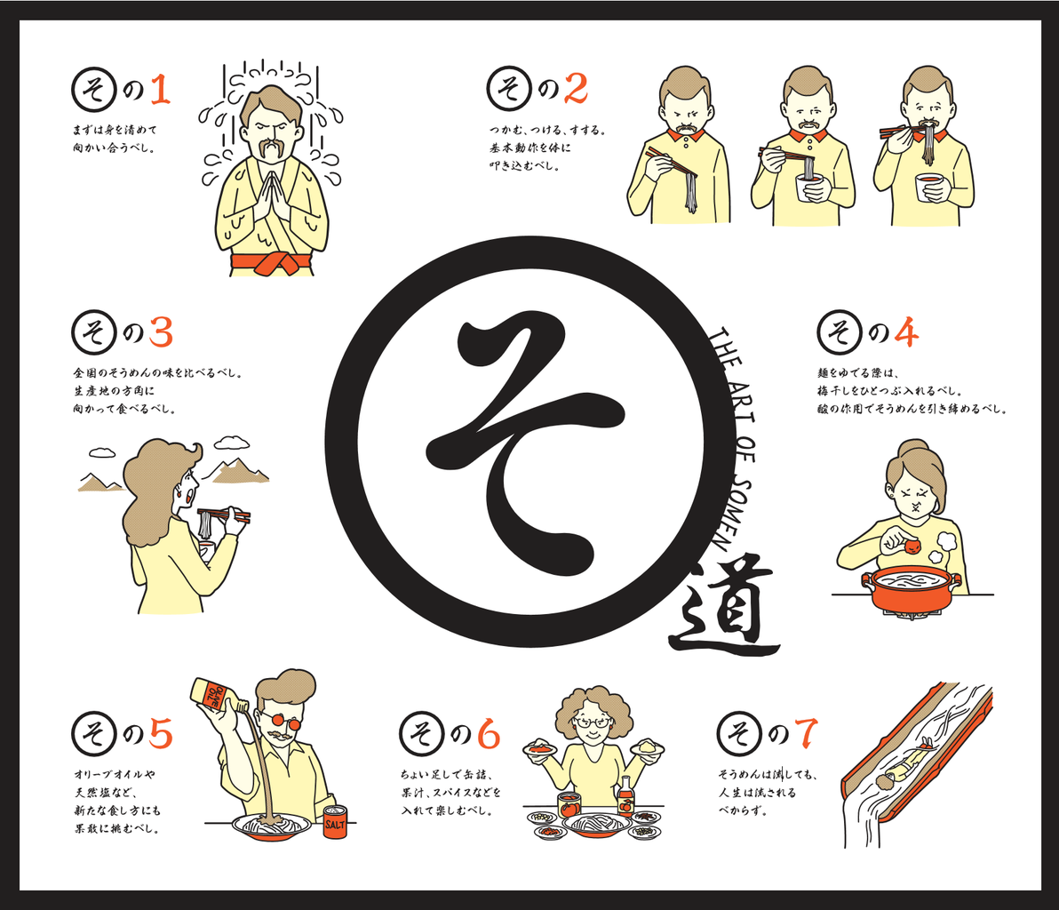 夏の風物詩イメージを守り抜くかわりに、ラーメンやうどん、そばが共通して漂わせているそれを食すための作法なのか心構えを示した“道”を、そうめんにも持たせることにしたようだ。