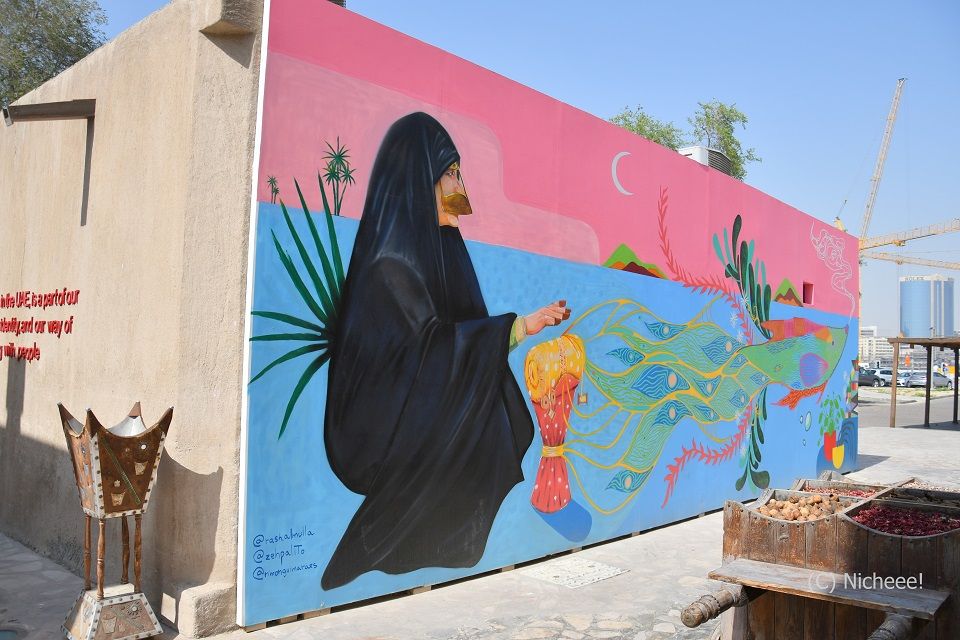 しかも、訪れた時はちょうど、ドバイの美観地区を活用したアートイベントが開催中。「Sikka Art Fair」といい、ドバイ出身のアーティストによる作品がいたるところにあって、見ごたえがありました。中には日本のアーティストによる作品もあったようですが、見つけられず残念。