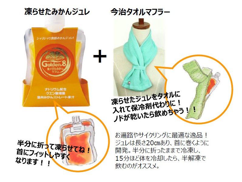 まず、“みかんで熱中症対策”という変わり種が、「金メダルみかんジュレ 今治タオルマフラー」だ。