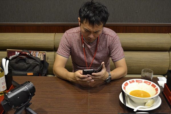 あっという間に食べ終わると、次のラーメンが来るまで、SNS活動に励みます(笑)