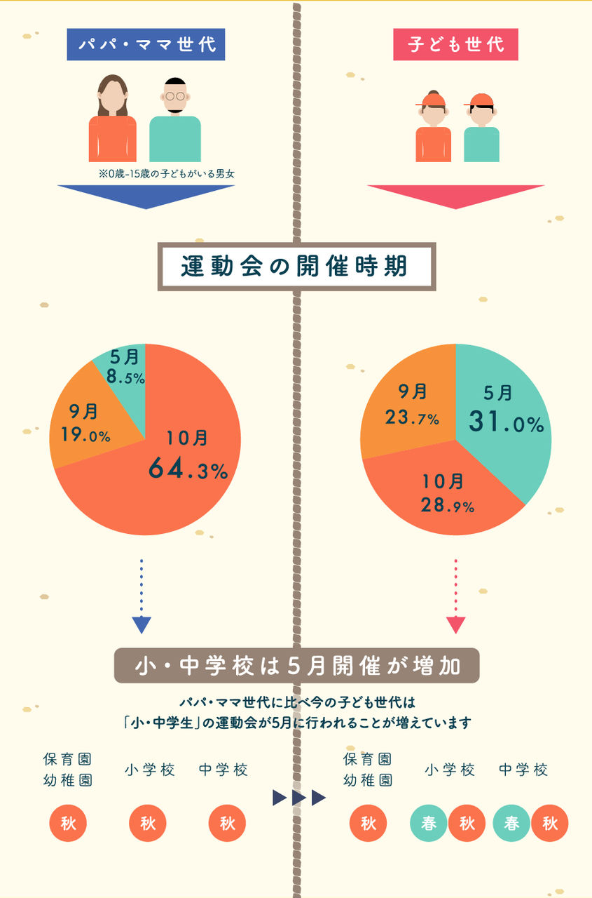 参考:パパ・ママ世代と子ども世代の運動会大比較