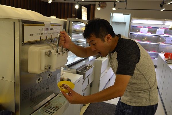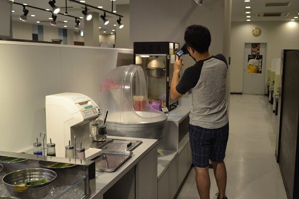 お店の入口でオープニングの撮影を済ませたわっきーさん、店内に並べられているメニューを撮影していたのですが、「すたみな太郎NEXT」さんはメニューが多く、焼肉や寿司はもちろん、ラーメンや串揚げ、綿菓子やクレープなど、一通り撮るのにも大変(笑)。
