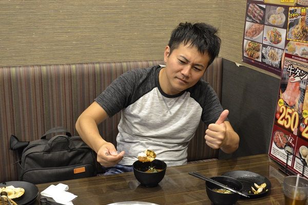販売開始から1カ月弱で、5万皿を超えた人気メニューとのことで、わっきーさんも食べた瞬間、いつものポーズが!