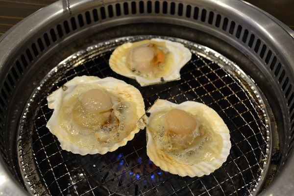 そして、二皿目は、9月15日から販売を開始した別皿メニューの、北海道・噴火湾産のホタテを使用した「ホタテ貝焼」(250円)。